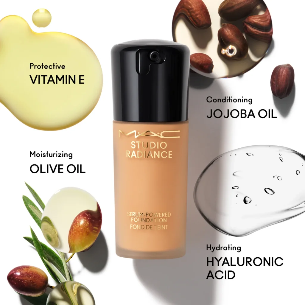 این محصول با ۸۰٪ پایه مراقبت از پوست و ۳۳ ترکیب اسکینکر فرموله شده است؛ از جمله محلول ۱۰٪ اسید هیالورونیک که رطوبت را در زیر سطح پوست قفل میکند. همچنین با ترکیبی از سوپرفودهای قدرتمندِ دوستدار پوست غنی شده است؛ مانند روغنهای زیتون و جوجوبا برای نرم و تغذیهکردن پوست و ایجاد درخششی سالمتر، بههمراه ویتامین E برای محافظت از پوست در برابر آلودگی و نور آبی.